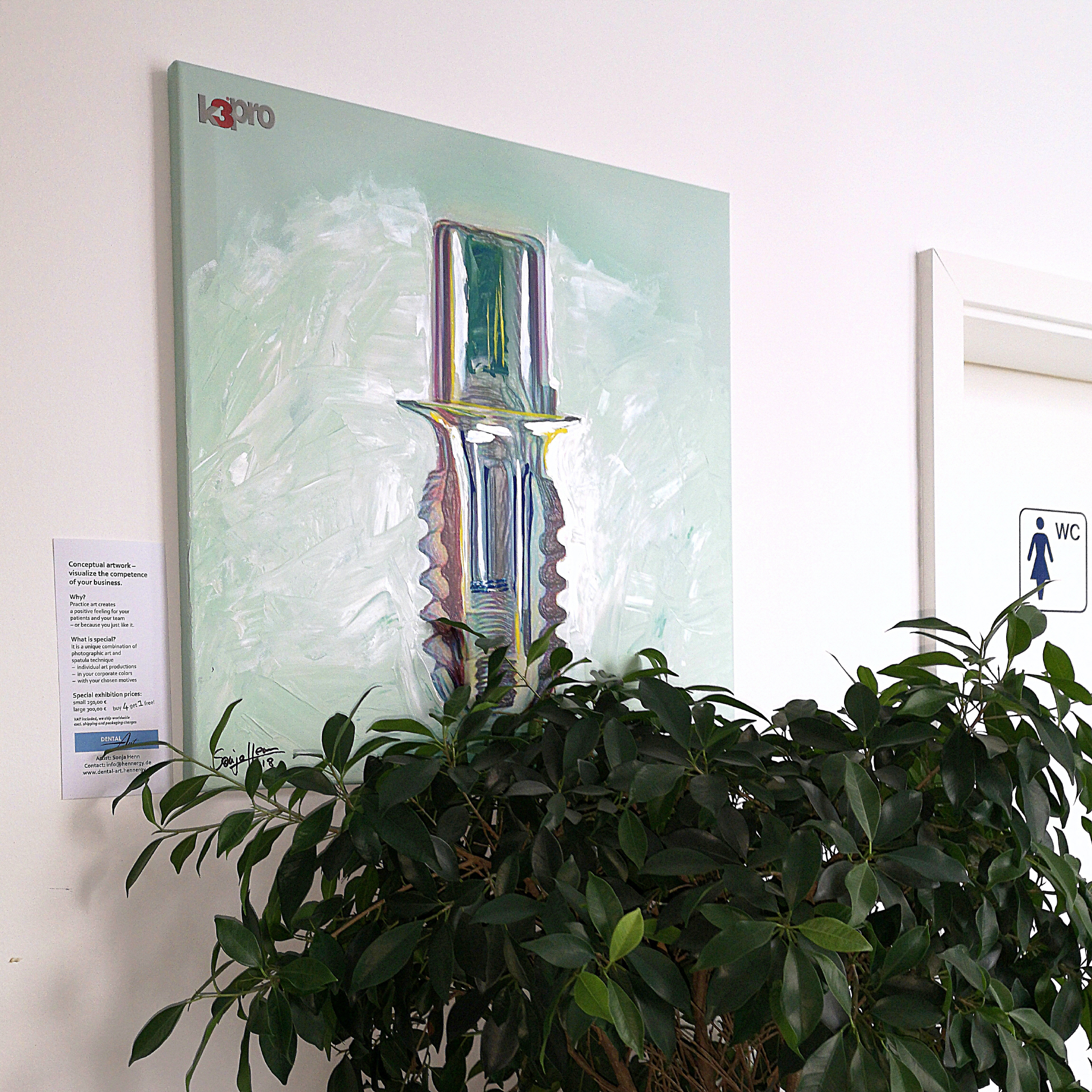In dieser fruchtbaren und innovativen Zusammenarbeit rücken Sie selbst in den Mittelpunkt der künstlerischen Betrachtung. Jedes Unternehmen hat eigene Werte und Stärken, die es einzigartig machen und seine Erfolge begründen. Eigens für Sie und Ihre jeweiligen Raumsituationen fertigt Dental-ART Kunstwerke an, die Ihren Räumen eine unverwechselbare künstlerische Note geben. Die Ausstattung Ihrer Umgebung soll neben den rein funktionalen Aspekten, auch Ihre Philosophie repräsentieren – gegenüber Ihren Mitarbeitern und besonders im Hinblick auf Ihre Geschäftspartner und Patienten.