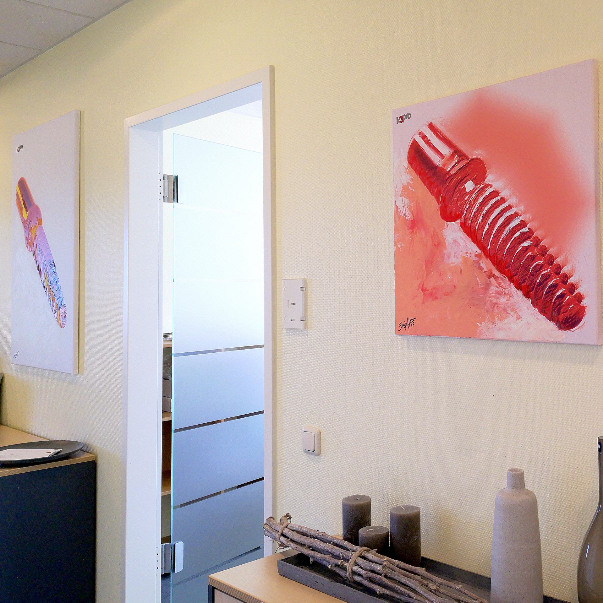 Selbstverständlich können Sie die gezeigten Kunstwerke für Ihre Räume käuflich erwerben. Sollten Ihnen Motive besonders zusagen, die Farben jedoch nicht zu Ihrem Interior passen, werden die Wunschmotive gerne Ihrem CI angepasst und individuell angefertigt. Eine große Auswahl an fotodesignten Implantat-Rohwerken ohne "Spachteltechnik-Finish", stehen Ihnen auf Anfrage zur Verfügung.